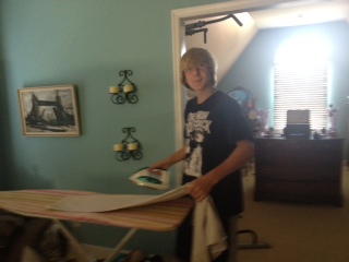 This past weekend I have to say I was nearly stunned into silence by Lucas. Saturday dawned bright and cheery…the day of his first hockey game of the season. He has a new coach this year so things are running a little differently. Instead of just showing up at the rink in his warm up suit he, and his team mates, need to wear shirts tucked into khaki pants, ties, belts and nice shoes. They need to bring a change of clothes for warm ups and then shower and change back into their shirts and ties after the game. Lucas came down in his clothes, just to make sure he had all the components ready. He looked good, almost great. The shirt was nicely starched and the tie was fabulous but the pants…wrinkle central. I told him to take his pants off so I could iron them (you all know how much I detest ironing but I will do when it’s absolutely necessary and Stan was out on a 30 mile bike ride so it came down to either having me iron them or having Lucas show up at his game looking like a doofus in messy pants.) Lucas did as I asked and then he asked me to fix him some eggs. “Not enough time for me to iron and fix eggs, Lucas,” I responded, going on to say “why don’t you fix yourself some eggs while I iron your pants?” Lucas had the solution…he would iron his pants, he said. I nearly fell over ~ stunned into silence.