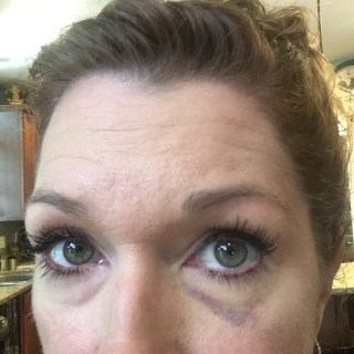 So, yes, I’m pissed. I’m furious thinking the door has been cracked open for others to think I’m an abused wife. My stress level has been at an all time high when I run my errands. I wish I had a head band with a big, bold sign saying, “I was hit by a tennis ball. HARD!” My eye is that bad.