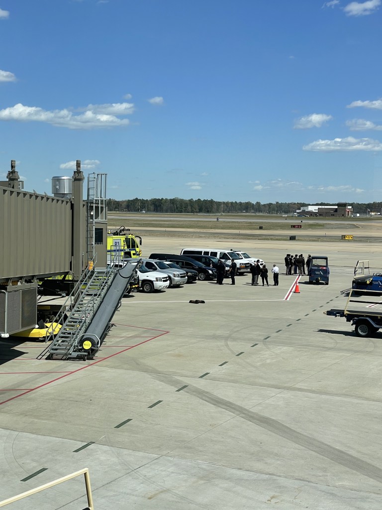 I say protecting because people at the airport can be nosy and intrusive, especially when they see American flags flying, an honor guard, and police cars and fire trucks with flashing lights. I’ve been asked what celebrity is flying in. I’ve been asked, “Is it President Biden? I hear he’s making a surprise visit today.”